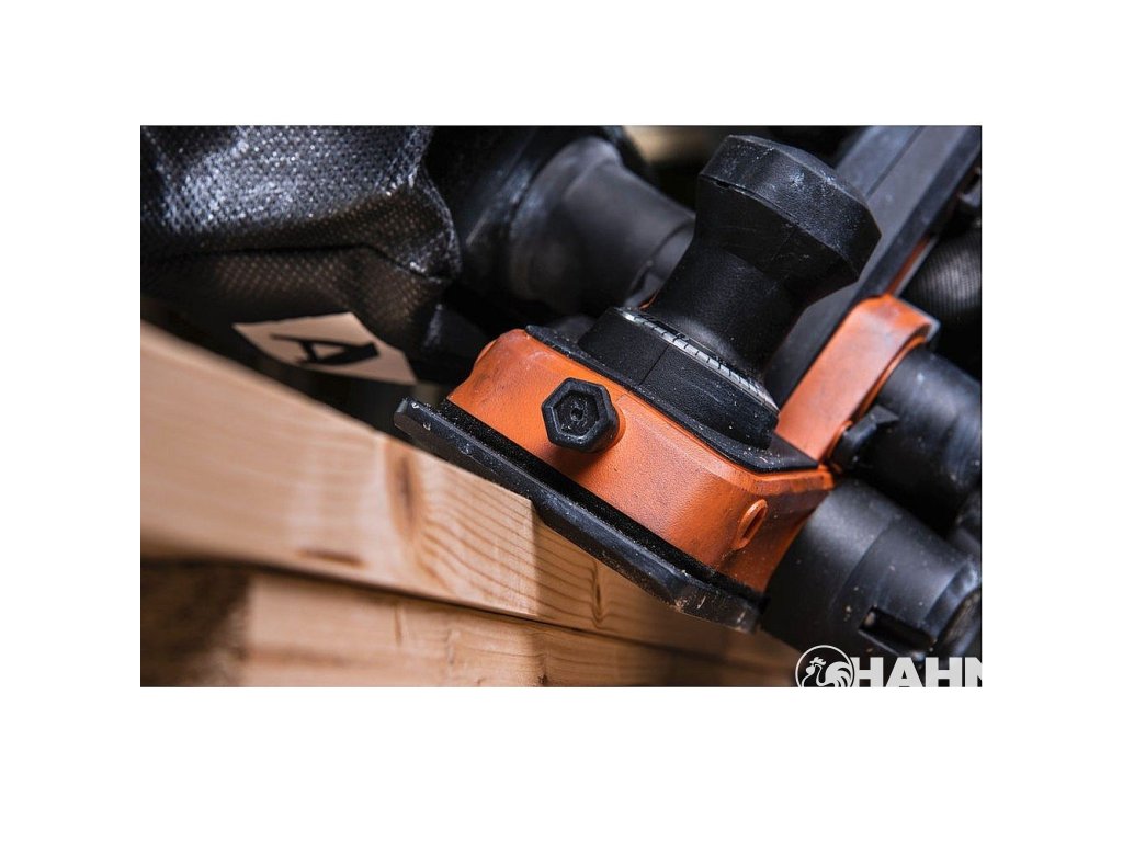 Patentovaná funkce nastavení hloubky dovoluje uživateli vysunout hoblovací patku až o 2 mm, což umožňuje dokonale vyvážené a přesné zkosení.
