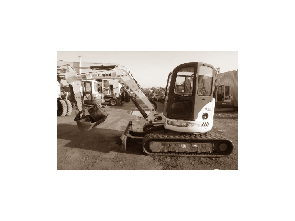 Minibagr Bobcat 435, rok výroby 2005, váha 4.708 Kg, jeho součástí je 1x rychloupínák, 1x standardní lopata, 1x svahovka. Cena 470.000,-Kč bez DPH.