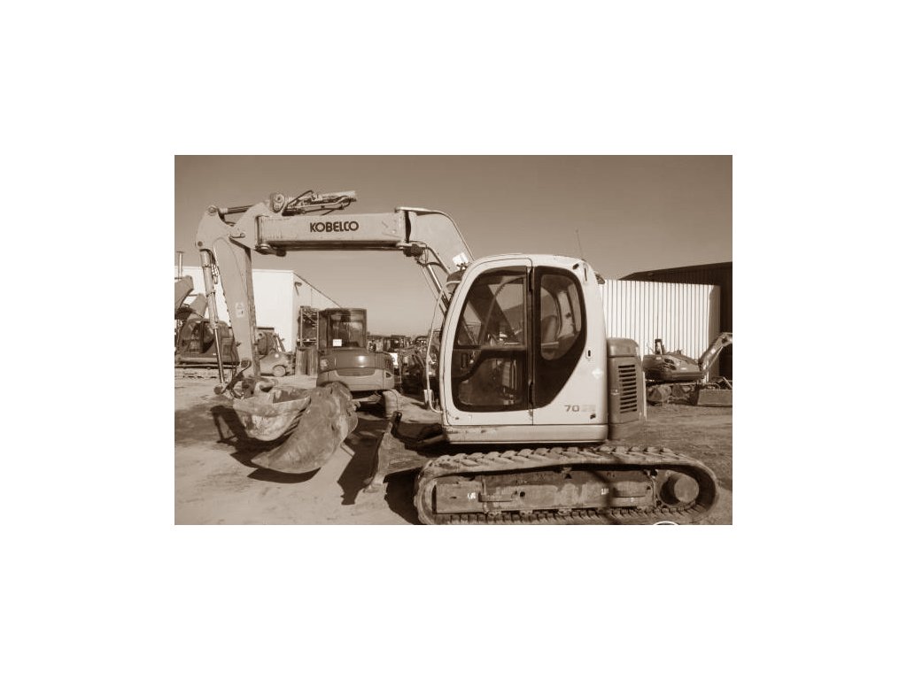 Minibagr Minibagr Kobelco SK 70 SR-1E, rok výroby 2003, váha 7.760 Kg, 4904 motohodin, jeho součástí je 1x rychloupínák, 1x standardní lopata, 1x svahovka.