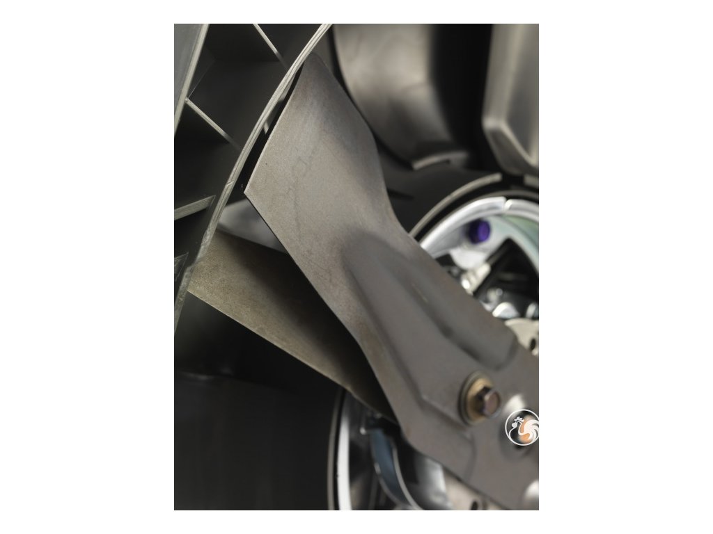 Podvozek a žací komora sekačky jsou speciálně tvarovány tak, aby se maximálně efektivně zlepšil tok ohromného množství vzduchu v prostoru pod sekačkou a následný průtok vzduchu, pumpovaného rotujícm žacím nožem, opatřeným ventilačními lopatkami, do sběrného koše. Značně se tím zlepšuje sběrný výkon sekačky.