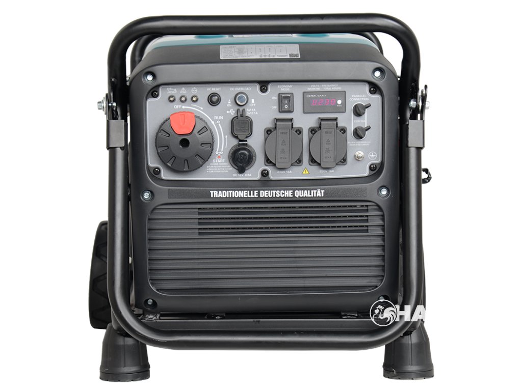 Pohodlné uspořádání všech základních funkcí: multifunkční LED displej (napětí, frekvence, počítadlo provozních hodin), indikátory provozního stavu: ochrana proti přetížení a zkratu, ochrana proti nedostatku oleje, resetovací tlačítko pro resetování řídicího systému a obnovení napájení, připojení pro paralelní zapojení elektrocentrál, dva USB výstupy (5V/1A, 5V/2,1A), typická 12 V zásuvka do auta pro různá zařízení vozidel, gadgetů a nabíječek baterií, zásuvky 230 V a uzemňovací svorka.