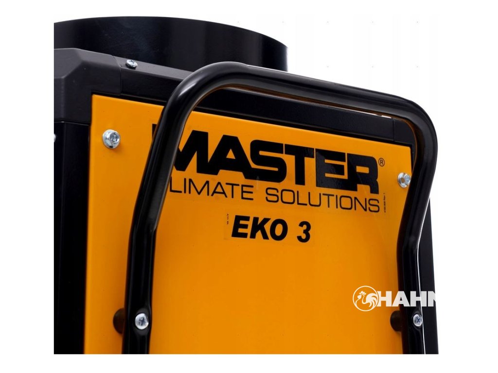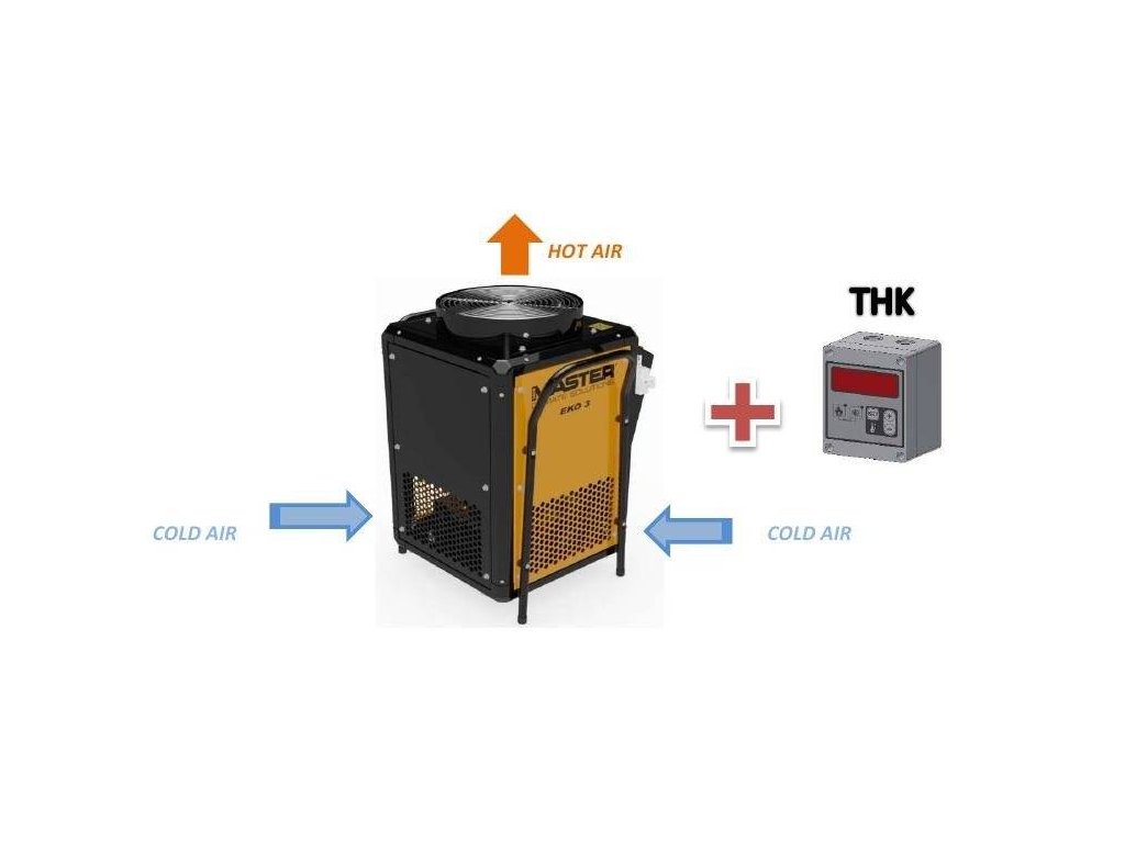 MASTER EKO 3 se umístí dovnitř místnosti a recirkuluje vzduch, čímž se současně zvyšuje teplota o 15 ° C.