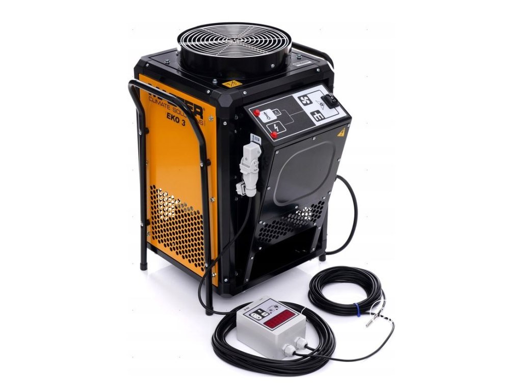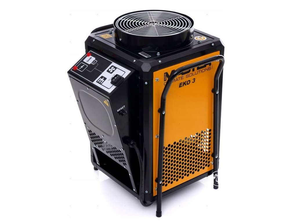 EKO 3 dodává 800 m 3 / h horkého vzduchu při použití pouze 2,8 kW při 230V (jednofázová)