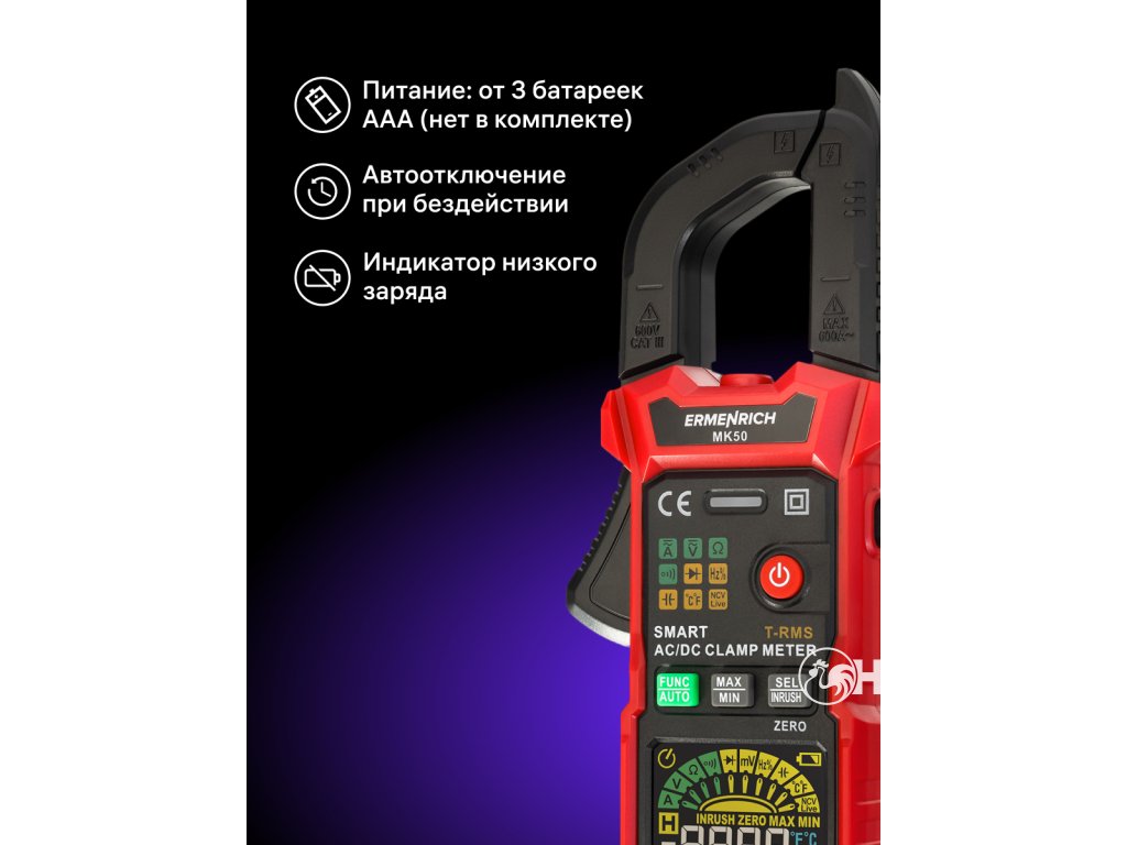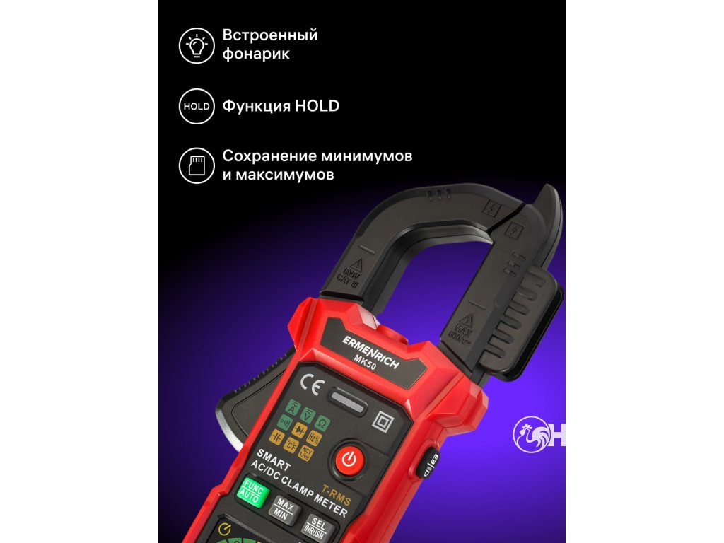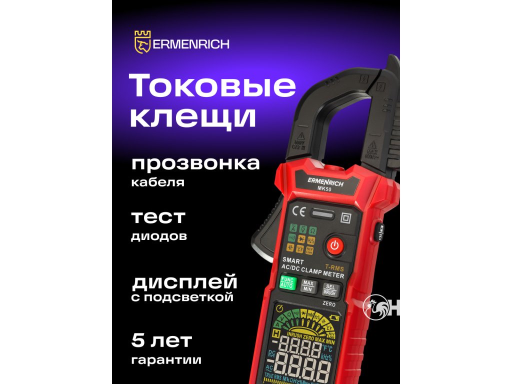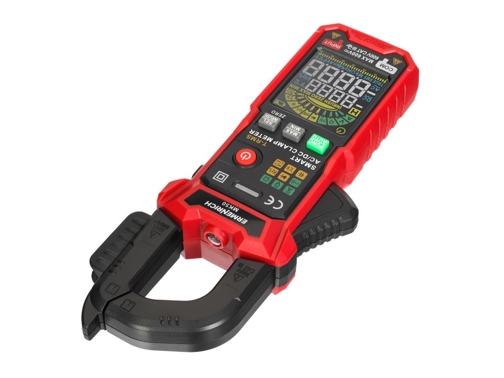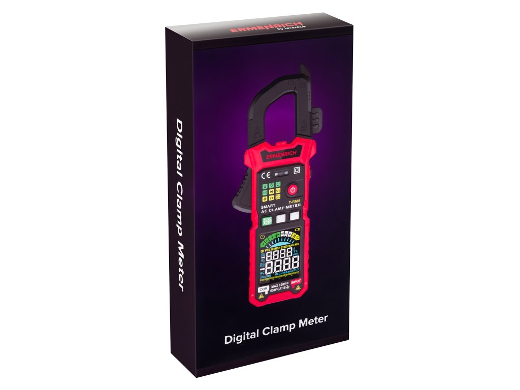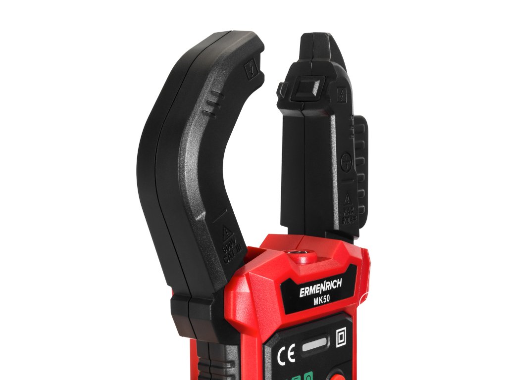 Pomocí digitálního klešťového přístroje Ermenrich Ping MK50 můžete diagnostikovat elektrická zařízení a měřit charakteristiky elektrických obvodů. Měření střídavého i stejnosměrného proudu probíhá bez přerušení obvodu a přístroj funguje také jako voltmetr, ohmmetr, termočlánkový snímač a měřič pracovního cyklu, frekvence a kapacity. Díky široké funkčnosti, vysoké přesnosti měření a snadnému ovládání je digitální klešťový měřič Ermenrich Ping MK50 vynikající volbou k provádění profesionálních elektrikářských prací a udržování funkčnosti domácích elektrických spotřebičů a elektrických rozvodů.Všechna měření se provádějí metodou True RMS, tj. měřením skutečné střední kvadratické hodnoty, což zvyšuje přesnost měření. Při měření stejnosměrného proudu můžete použít funkci DCA Zero ke kompenzaci zbytkové magnetizace. Přístroj je inteligentní, což znamená, že dokáže detekovat a měřit příchozí signál v plně automatickém režimu: Funkce Smart funguje pro test kontinuity, měření napětí a odporu.