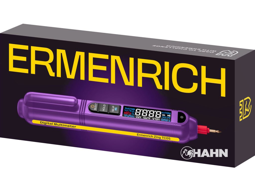 Model Ermenrich Zing TC05 se i přes své kompaktní rozměry (délka pouhých 17 cm) může pochlubit bohatou výbavou. Výpočet True RMS zajišťuje přesné měření střídavého napětí i při nelineárních zátěžích pomocí výpočtu skutečné střední kvadratické hodnoty. Bezkontaktní detekce napětí (NCV) detekuje napětí ve vodičích nebo obvodech bez kontaktu. Měření kapacity sahá od 0 nF do 60 mF, což umožňuje i měření velkých kondenzátorů. Rozlišení až 0,001 V (stejn.) a 0,1 Ω umožňuje detekovat i nepatrné změny napětí a odporu, což je pro kritické úlohy zásadní.