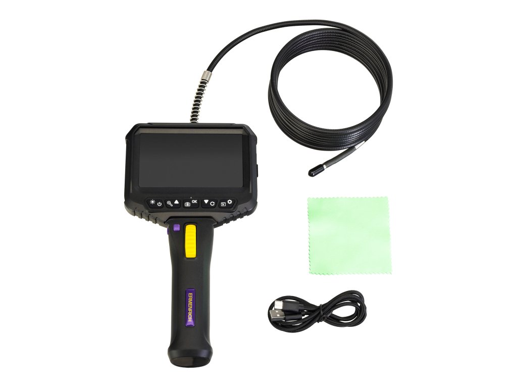Průmyslový endoskop Ermenrich Seek VE80 je multifunkční profesionální nástroj s otočnou kamerou s 90° záběrem a malým průměrem pouhých 6,2 mm. Boreskop se používá ke kontrole kvality oprav a stavebních prací, ke kontrole celkového stavu prostor a k vyhledávání zdrojů vlhkosti, plísní a námraz. Díky ohebné a tenké sondě může uživatel snadno prozkoumat jakoukoli těžko přístupnou dutinu nebo inženýrské sítě (elektrické rozvody, potrubí, šachty atd.) ve zdi. Délka kabelu: 3 metry. Pro práci v úplné tmě je endoskop vybaven podsvícením sestávajícím ze šesti jasných LED diod umístěných kolem objektivu kamery.
