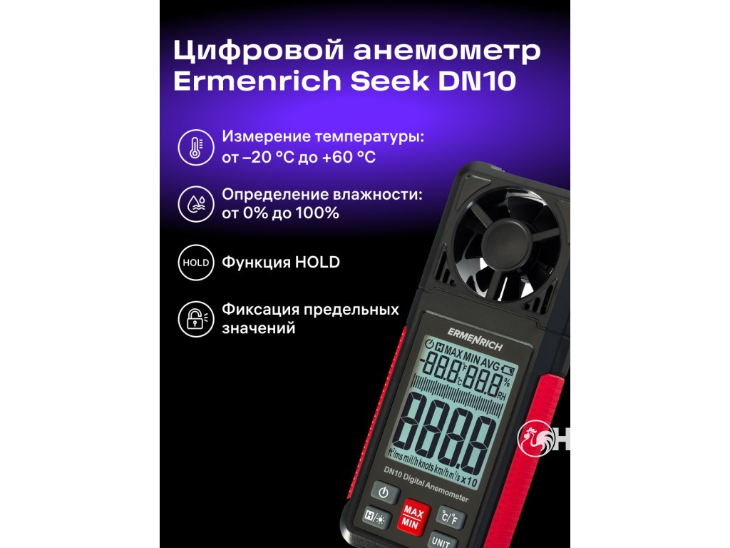 Digitální anemometr Ermenrich Seek DN10 je profesionální měřicí přístroj, který umožňuje monitorovat rychlost proudění vzduchu, teplotu a vlhkost vzduchu ve venkovním nebo vnitřním prostředí. Přístroj má zároveň malé rozměry, ergonomické tělo a pracuje zcela autonomně.