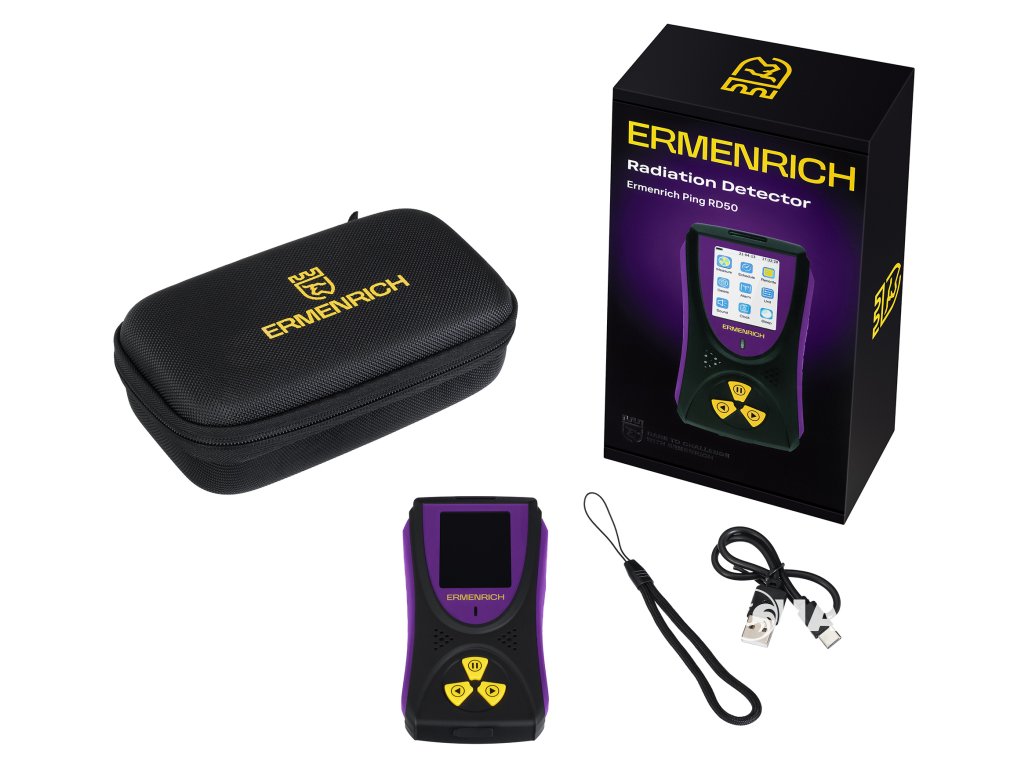 Dozimetr Ermenrich Ping RD50 je nezbytný pro měření radiace pozadí v prostředí, vodě, potravinách, budovách a předmětech pro domácnost. Geiger-Mullerův čítač může měřit záření gama, beta a rentgenové záření v rozsahu od 0,05 µSv do 50 mSv. Při překročení přípustné úrovně vydává zařízení zvukovou a světelnou výstrahu.