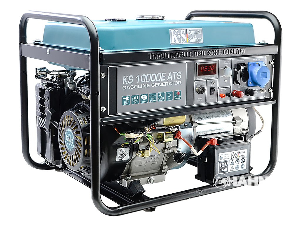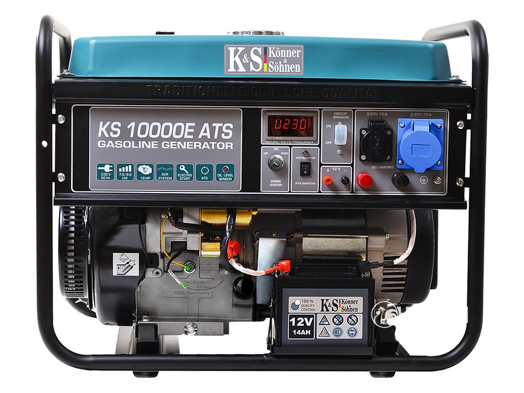 Jednou z jedinečných vlastností elektrocentrály KS 10000E ATS je vestavěná jednotka ATS (Automatic Transfer Switch). Tato funkce umožňuje elektrocentrále monitorovat napájení ze sítě a automaticky se zapnout v případě výpadku napájení a poté se automaticky vypnout po obnovení napájení. Tato funkce je nepostradatelná a velmi užitečná v budovách s přísnou regulací teploty nebo světla a za nepřítomnosti dozorčího personálu.
