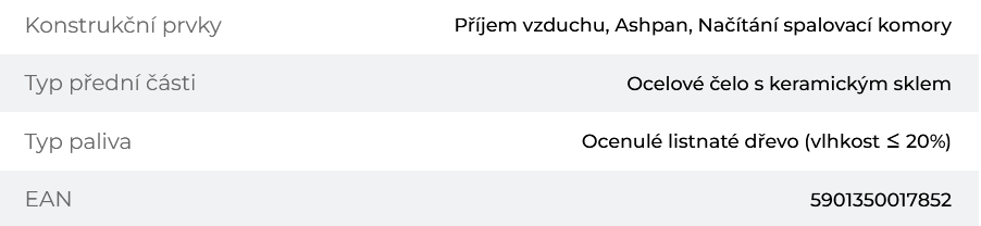 - Pohyblivý rošt a zásuvka na popel umožňují udržovat kamen čisté.