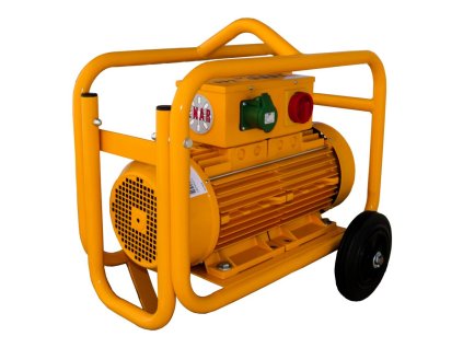 Vysokofrekvenční měnič v trubkovém rámu a včetně podvozku k ponorným vibrátorům, trubkový rám, tepelně-magnetický jistič, měnič s permanentními magnety, 3 zásuvky, výkon 6 000...