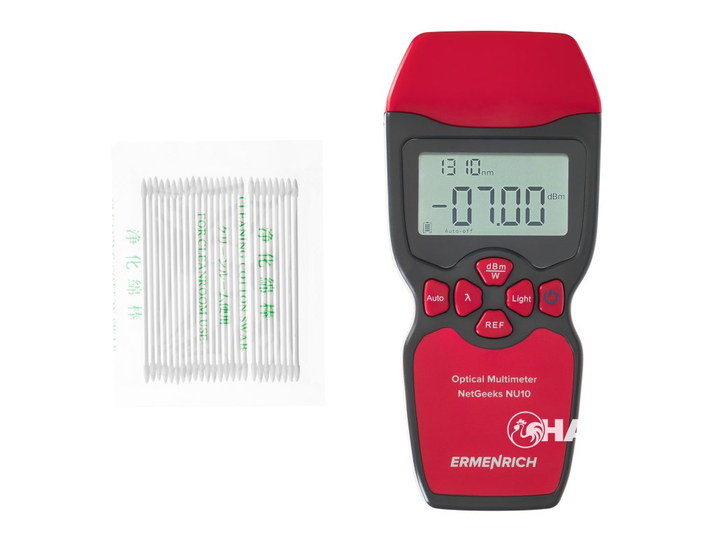 Optický multimetr Ermenrich NetGeeks NU10 je kompaktní přístroj pro testování komunikačních linek z optických vláken. Můžete s ním měřit absolutní optický výkon nebo relativní ztrátu optického výkonu mezi dvěma body v optickém kabelu. Přístroj je užitečný pro ty, kteří instalují a udržují kabelové sítě nebo kontrolují a certifikují telekomunikační zařízení.