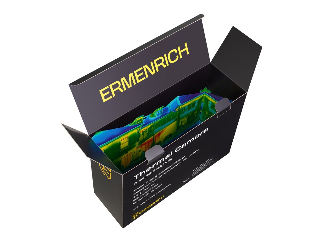 Termokamera Ermenrich Seek TV55 je ruční měřicí zařízení, které je určeno pro profesionály ve stavebnictví, údržbě a opravách inženýrských sítí. Je vhodná pro detekci úniků tepla ve stěnách, oknech a střechách, diagnostiku přetížení elektrických rozvodů, monitorování systémů vytápění, větrání a klimatizace (HVAC), kontrolu kvality zdiva a vyhledávání skrytých závad.