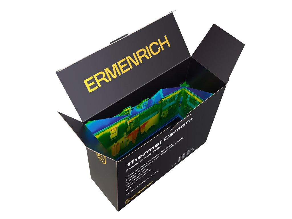 Termokamera Ermenrich Seek TV80 je výkonné ruční zařízení s rozšířeným teplotním rozsahem a možností dálkového ovládání pomocí smartphonu nebo tabletu. Hodí se k profesionálnímu monitorování stavu zařízení a analýze tepelného výkonu budov, ke kontrole izolace stěn, fasád, spár a výklenků, k diagnostice systémů vytápění, větrání a klimatizace (HVAC) a ke kontrole elektrických a vodovodních systémů z hlediska přehřívání a netěsností.