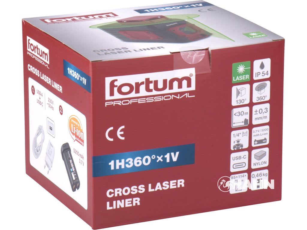 Laser zelený liniový, křížový samonivelační FORTUM, 4780209