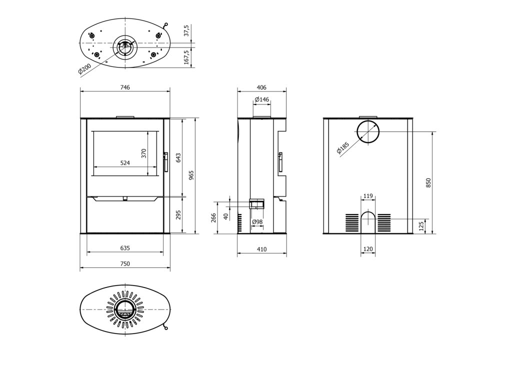 - Průměr kouřového hrdla: 150 mm