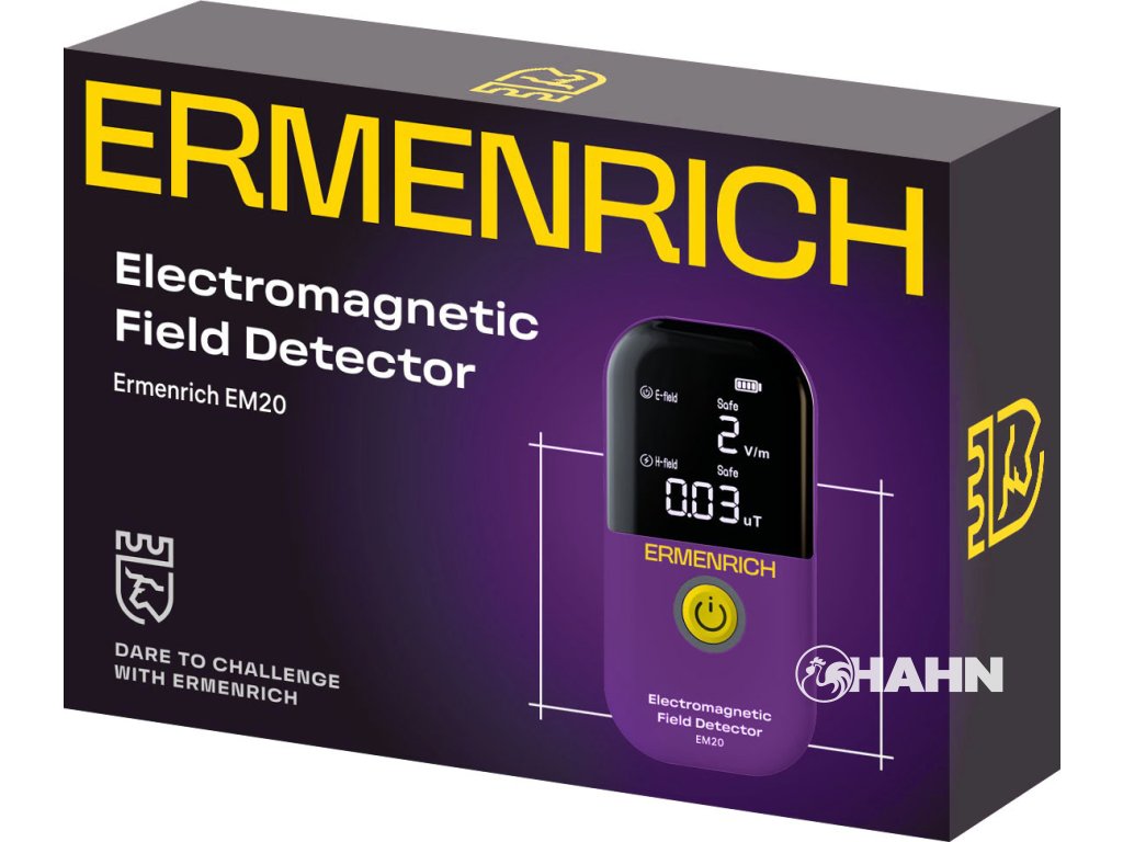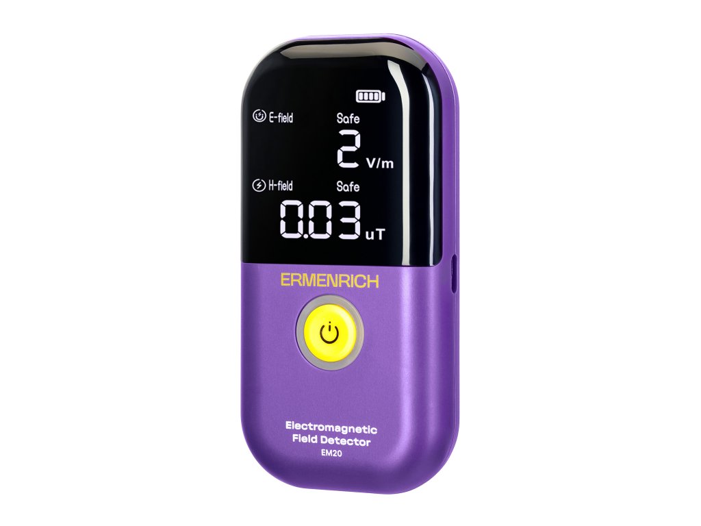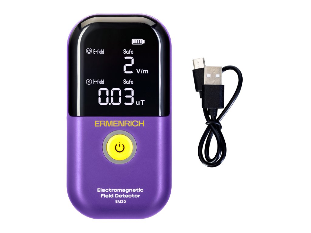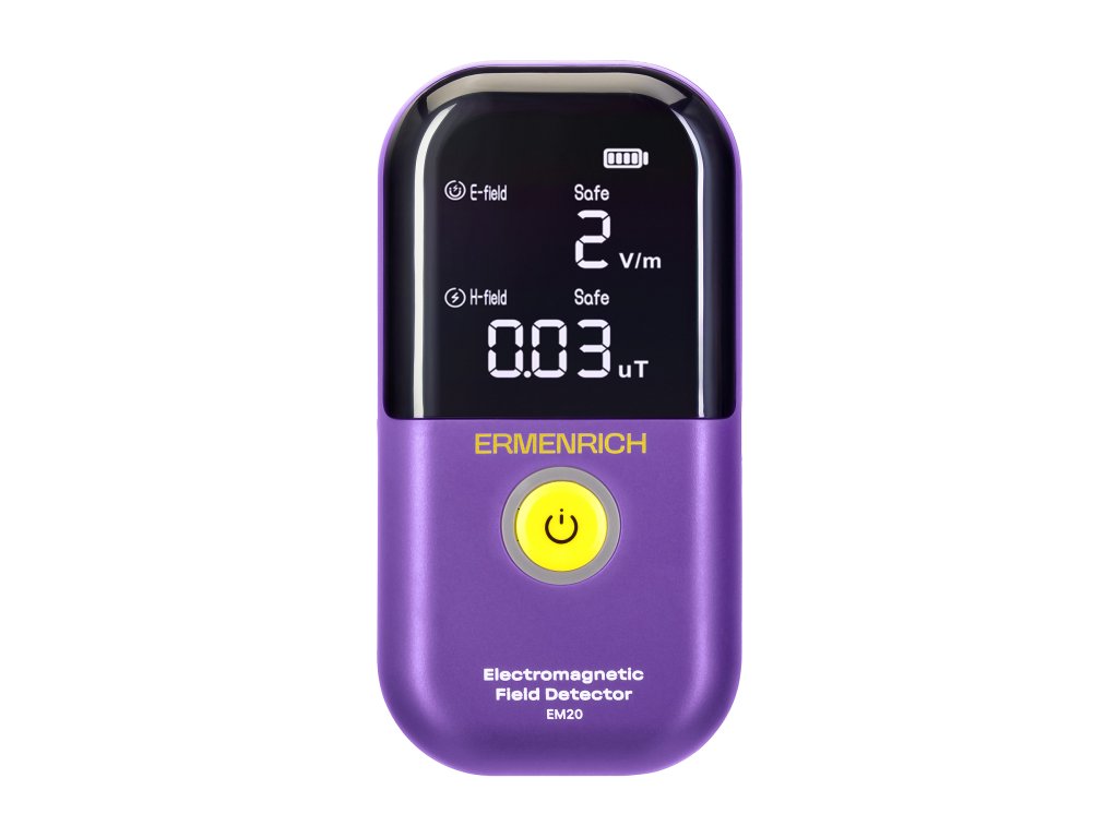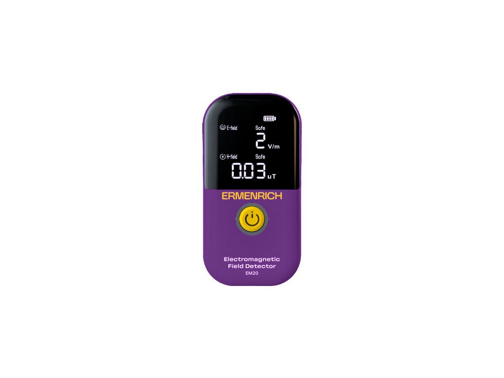 Detektor elektromagnetického pole Ermenrich EM20 je kompaktní kapesní nástroj, který se používá k detekci a měření elektrických a magnetických polí za účelem identifikace potenciálních zdravotních hrozeb, prevence úrazu elektrickým proudem při instalačních pracích, posouzení bezpečnosti domu před koupí/pronájmem atd. Působení silných elektromagnetických polí na člověka může způsobit vysokou únavu, deprese a snížení výkonnosti. Může také vést ke změnám funkce orgánů a rozvoji neurodegenerativních onemocnění. Proto je důležité pravidelně kontrolovat bezpečnost obytných a pracovních prostor, aby se předešlo negativním důsledkům nadměrně aktivního elektromagnetického pozadí.