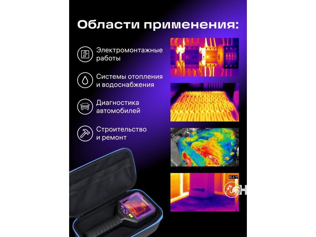 Stavební termokamera Ermenrich Seek TV90 se používá ke kontrole kvality zařízení a prací prováděných ve stavebnictví, v průmyslových podnicích, při instalaci topných systémů a při opravách automobilů a zařízení. Je užitečná i při hubení škůdců, například při vyhledávání drobných živočichů v budovách. Rozsah měřených teplot přístroje je –20 až +400 °C.