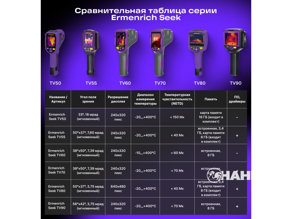 Model Ermenrich Seek TV90 je vybaven termovizním snímačem s rozlišením 256x192 px a kamerou pro viditelné světlo. Dostupné režimy zobrazení: infračervený režim, režim viditelného světla, režim duálního světelného vidění a režim infračervené detekce okrajů. Funkce obraz v obraze umožňuje pracovat ve dvou režimech současně.