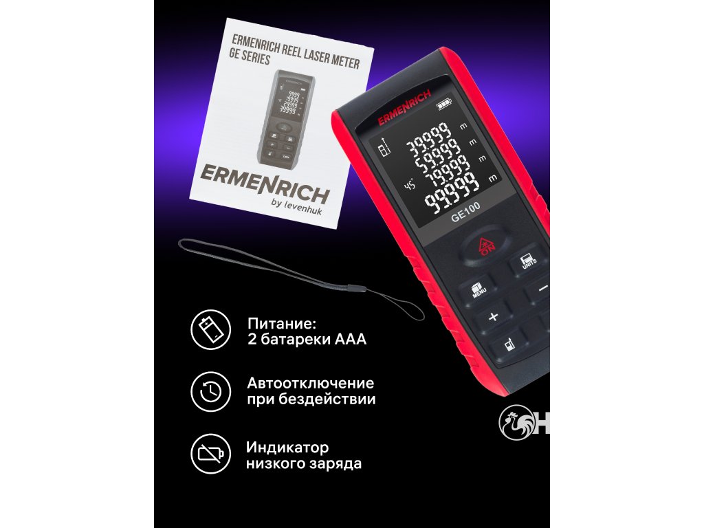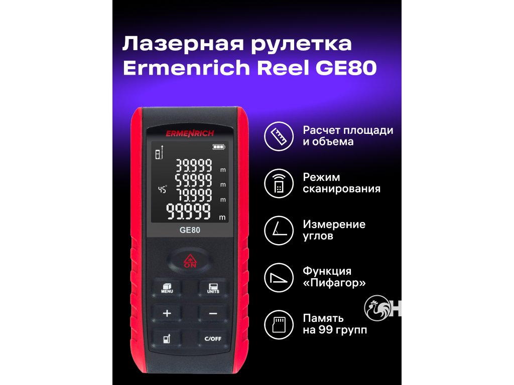 Laserový měřič Ermenrich Reel PRO GE80 je univerzální měřicí přístroj, který je užitečný pro mnoho technických, stavebních, opravárenských a domácích prací. Umožňuje měřit nejen vzdálenost, ale také vypočítat objem, plochu a úhly. Funkce Pythagorovy věty byla přidána pro případ, že není možné měřit vzdálenost po přímce (například v dráze laserového paprsku jsou překážky). V tomto případě přístroj provede výpočty na základě průběžných měření.