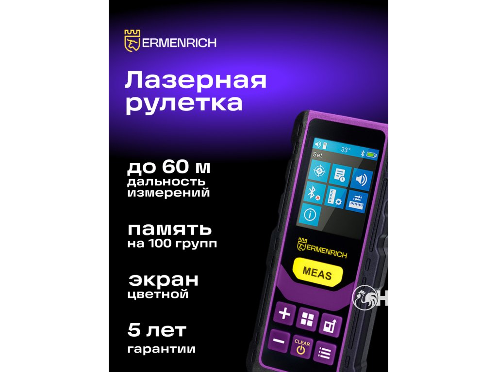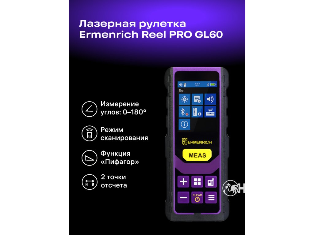 Laserový měřič Ermenrich Reel PRO GL60 se používá k lineárnímu a prostorovému měření v průmyslu, stavebnictví a při opravách v domácnosti. S tímto kompaktním přístrojem můžete měřit vzdálenost, délku, úhly, objem a plochu a také trojúhelníky a čtverce. Je také vybaven funkcí Pythagorovy věty, která dokáže nepřímo určit vzdálenost mezi dvěma body pomocí dvou mezilehlých měření. Měření je přesné s přesností ±1,5 mm díky zelenému laserovému paprsku s vlnovou délkou 500–535 nm.