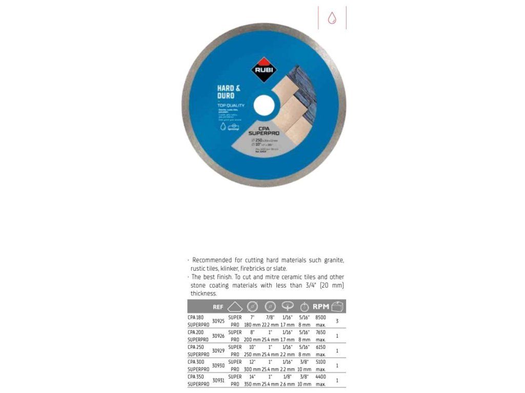 Diamantový kotouč Rubi CPA-180 SUPERPRO na tvrdý materiál