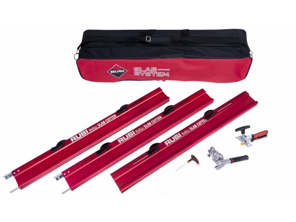 Systém se skládá z několika částí: 3 vodicích lišt o délce 112 cm, řezacího vozíku, kleští na lámání SLAB a montážního klíče. Systém se dodává v praktické tašce. Lámací kleště SLAB mají dvojí funkci, mohou lámat dlaždice jako běžné lámací kleště nebo pomocí upínacího šroubu. Vodicí lišty jsou vyrobeny z hliníku, který jim dodává vysokou pevnost a zároveň nízkou hmotnost, pouhých 16,2 kg. Pásky se na dlaždice připevňují pomocí vakuových přísavek. Systém je dodáván s profesionálním řezným kotoučem RUBI EXTREME o průměru 22 mm z karbidu wolframu.