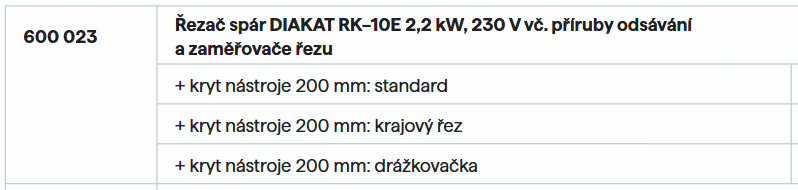 Variace s rozdílným příslušenstvím, cena u krajového řezu a drážkovačky na vyžádání: