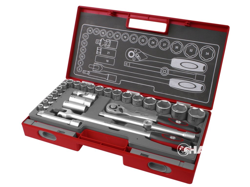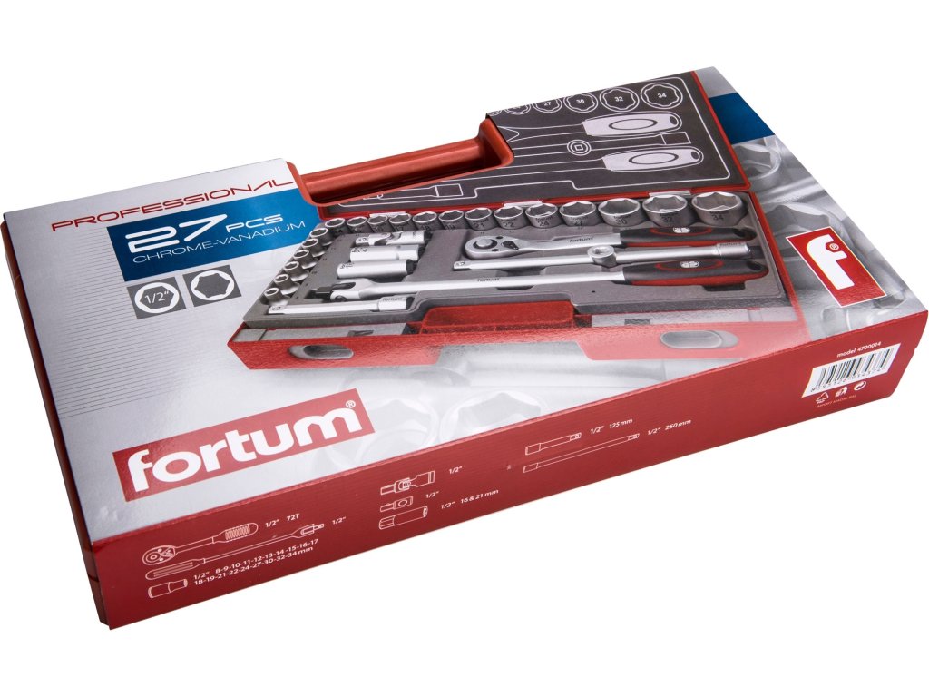 FORTUM Hlavice nástrčné, sada 27ks, 1/2"
