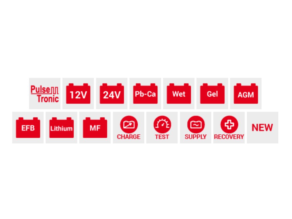 Elektronicky, microprocesorem řízená automatická pulzní nabíječka pro celkovou údržbu baterií WET, GEL, AGM, SPIRAL MF (motocyklové baterie, speciální baterie pro práci v náklonu - výrobce OPTIMA - Johnson Controls), START - STOP baterie 12/24V. Zcela nový pulsní nabíjecí generátor zaručuje lepší výkon nabíjení o 50 % více než u tradiční nabíječek.