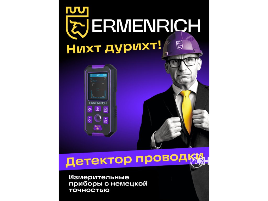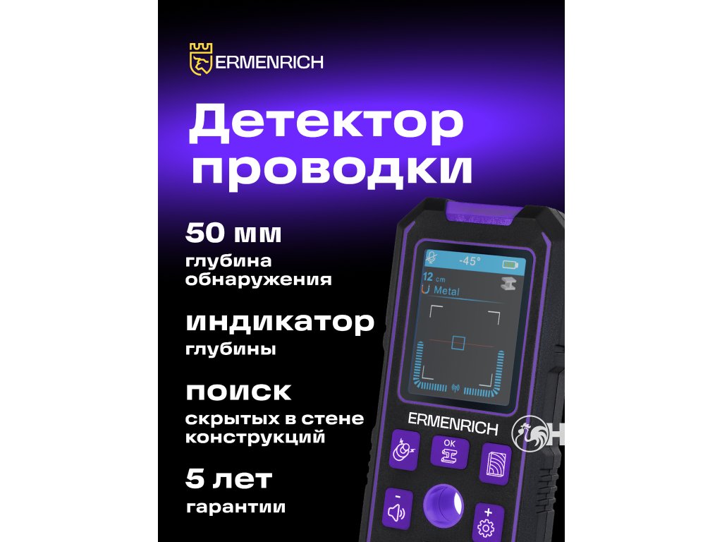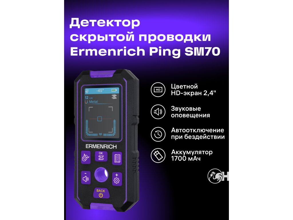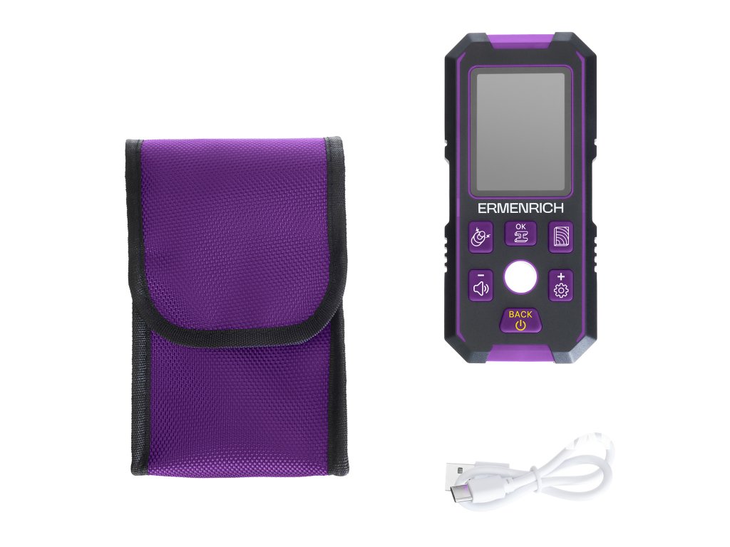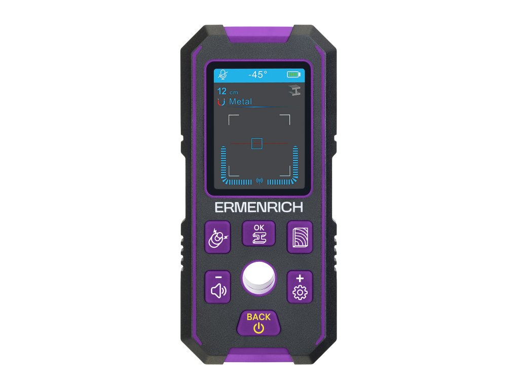 Stavební detektor Ermenrich Ping SM70 je přístroj pro detekci kovových předmětů (trubek, armovacích prutů, samořezných šroubů), kabelů pod napětím, dřevěných konstrukcí skrytých ve stěnách, podlahách a stropech. Je nutný k zajištění bezpečnosti stavebních, opravárenských, dokončovacích a instalačních prací. Například při vrtání nedojde k náhodnému zasažení vodičů pod napětím nebo k poškození vrtáku o kovovou část. Stavební detektor Ermenrich Ping SM70 je užitečným nástrojem nejen pro profesionální účely, ale i pro domácí použití.