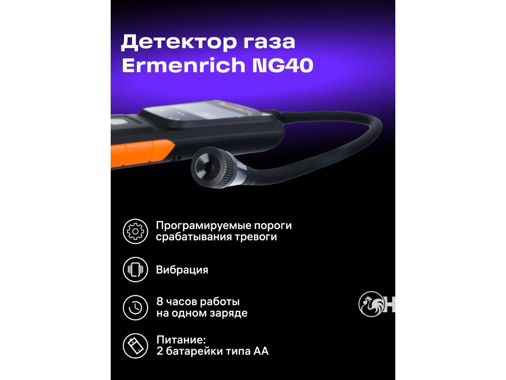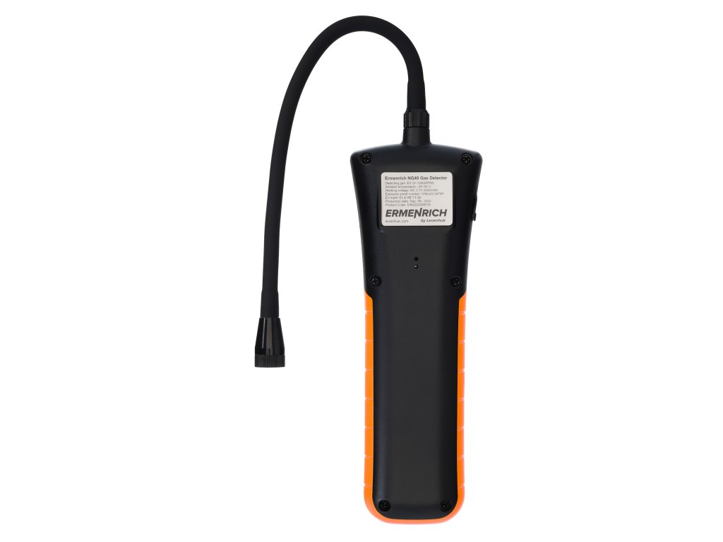 Detektor plynu Ermenrich NG40 s flexibilní sondou je detektor plynu, který dokáže rychle odhalit únik hořlavého plynu i v těžko přístupných místech. Spolehlivý detektor s vysoce citlivým senzorem a možností nastavení individuálních hodnot alarmu. Přístroj je užitečný v domácnosti s plynovými spotřebiči, v průmyslovém prostředí i na čerpací stanici. Umožňuje rychlou identifikaci zdroje nebezpečí a přijetí opatření k řešení úniku plynu.