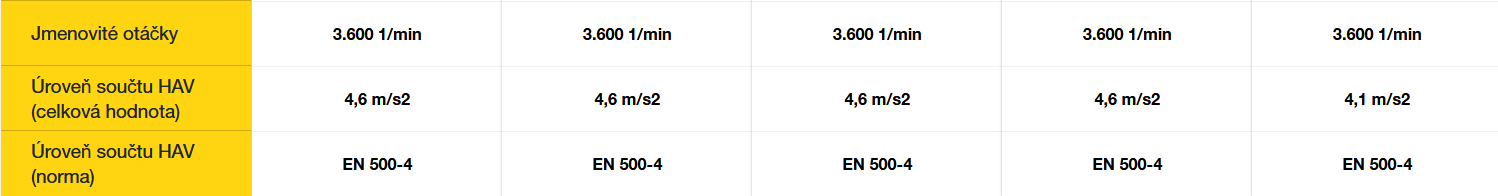 - Nízké hodnoty vibrací působících na ruce a paže (<5 m / s²) umožňují pohodlnou práci.