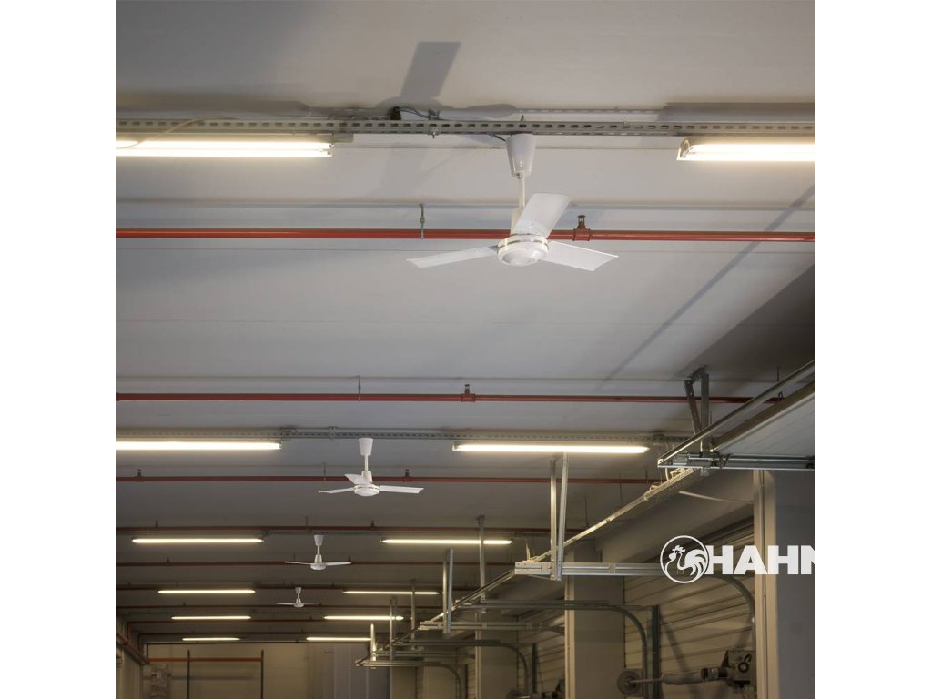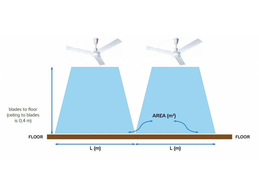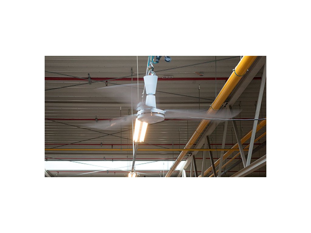 Ventilátor o průměru 1500 mm, vhodný pro prostory max. 470 m2, provozní výška 14m.