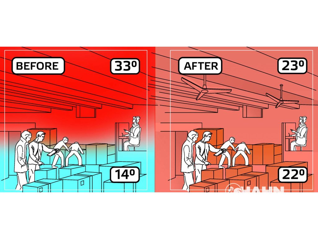 Podle přirozené vztlakové síly stoupá teplejší vzduch, což může ve vysokých místnostech (např. haly) způsobit rozdíl 10 °C až 20 °C v teplotě vzduchu mezi podlahou a stropem. Pro získání požadované teploty ve spodní části místnosti většina firem vytápí halu dlouhodobě a zbytečně, přestože teplota vzduchu v horní části již dávno dosahuje 28 °C.