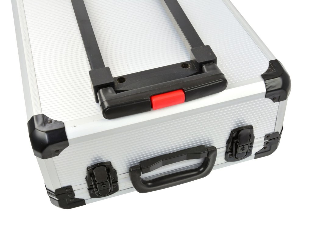 Praktické hliníkové pouzdro, které je skvělé pro uložení všech druhů věcí. S polstrovaným vnitřkem, rukojetí a pevnými cvočky.Rozměry: