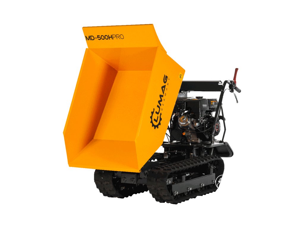 Malý pásový sklápěč je konstruován pro snadné použití například pro převoz nákladů po náročném terénu, nebo na odklízení sněhu.