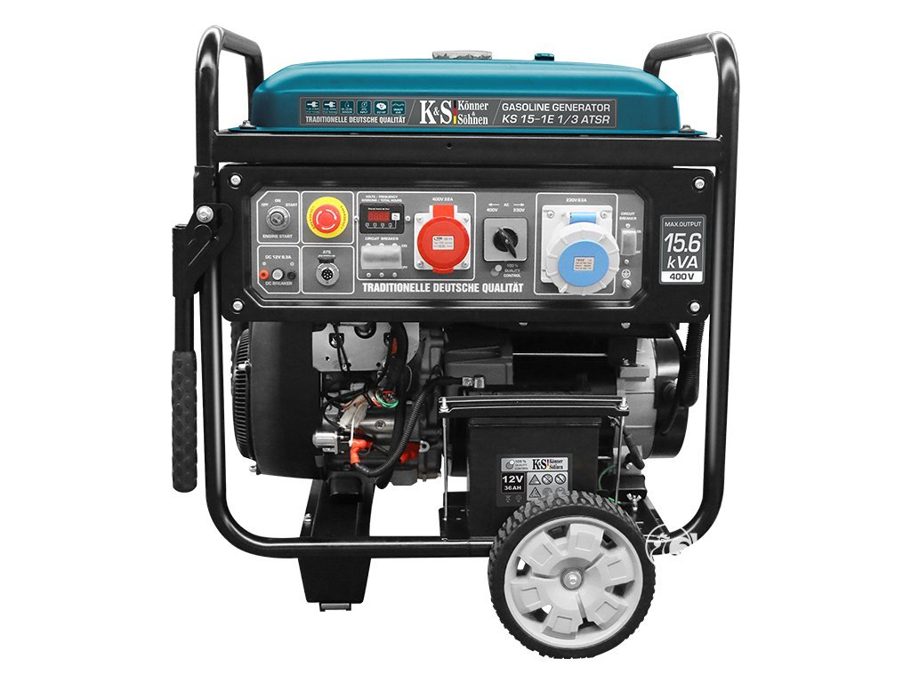 Vysoce výkonná benzínová elektrocentrála KS 15-1E 1/3 ATSR je založena na robustním proprietárním dvouválcovém motoru o výkonu 22 HP od společnosti „Könner & Söhnen“, který splňuje všechny evropské normy kvality včetně nejnovějších emisních norem EURO V.