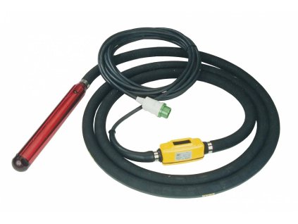 Vysokofrekvenční ponorný vibrátor o průměru hlavice 50 mm a délkou hacice 5 m. Tepelná ochrana.