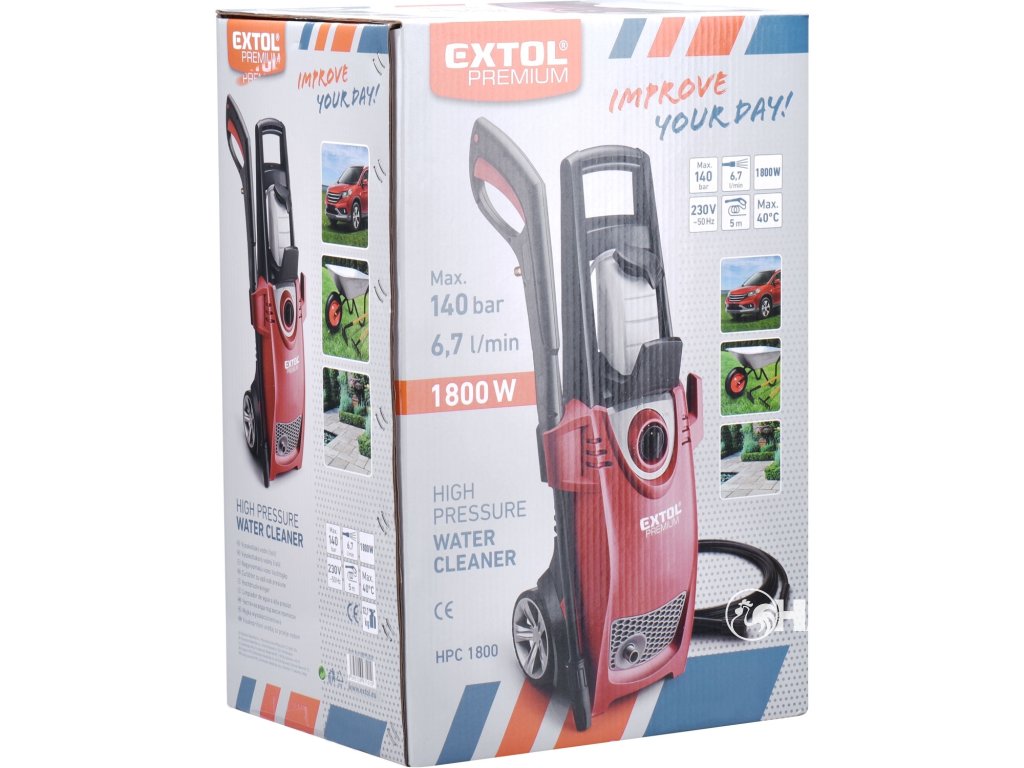 EXTOL čistič vysokotlaký se samonasáváním vody a šamponováním, 140bar, 1800W